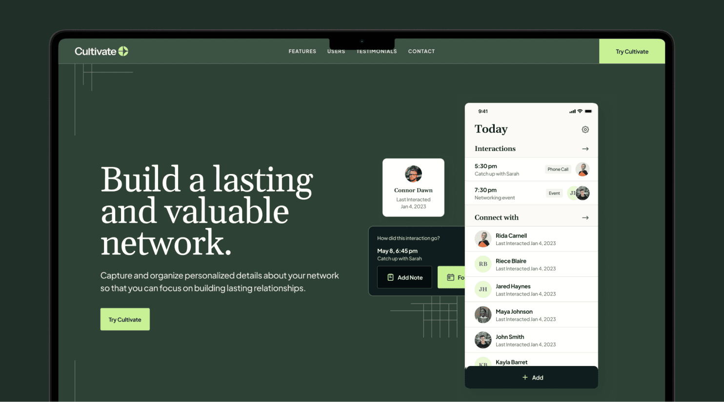 Cultivate categorizes people you know by interest, relationship and organization, captures personalized details for quick reference, and promotes thoughtful communication.